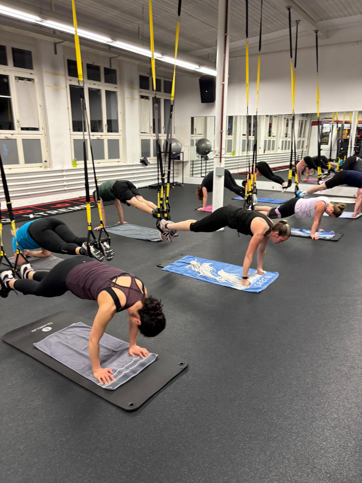 Powere dich bei einer Stunde TRX-Training so richtig aus. Bei diesem Ganzkörpertraining mit Gurten nutzt du dein eigenes Körpergeweicht um sämtliche Muskelgruppen zu trainieren.